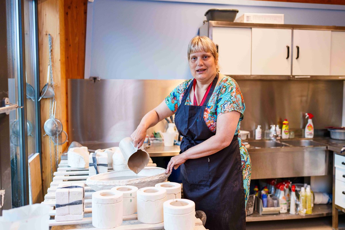 De cliënten van De Diggel zijn creatieve mensen met een beperking die kiezen voor een werkplek in de pottenbakkerij. Iedereen heeft een aandeel in het proces van gieten, bakken, decoreren en glazuren. Het decoreren doen de meeste medewerkers in een geheel eigen stijl.